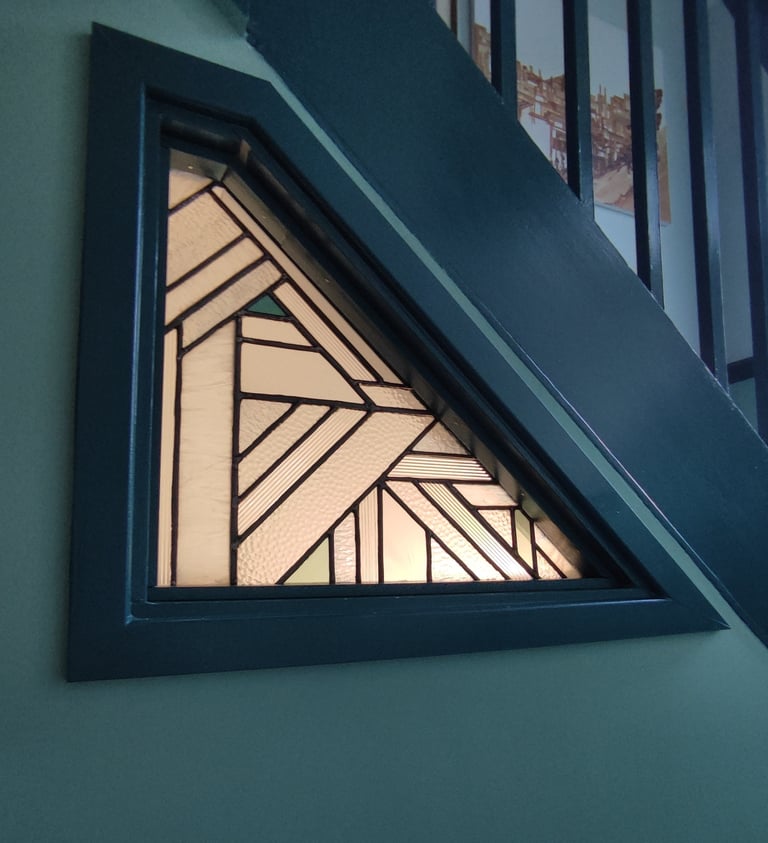 "Laura created a bespoke piece for the light well at the top of our stairs. Gorgeous intersecting colours and shapes - the joy she takes in making really comes through in her work."